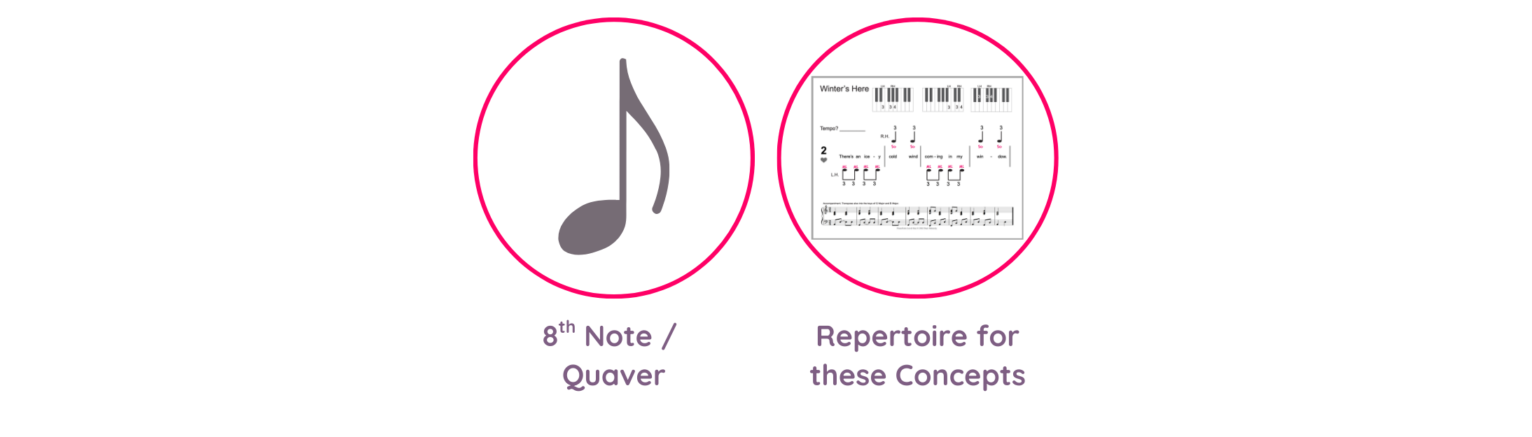 This lesson introduces one new concept - the 8th note (quaver). The supporting repertoire includes elements that have already been introduced giving the students lots of extra musical practice.
