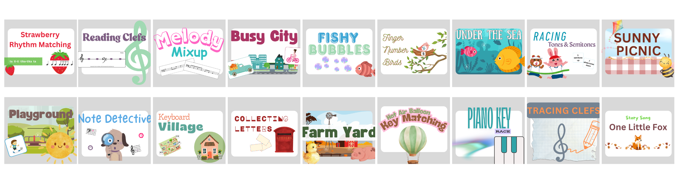 The Pre-school / Early-Years collection of songs and activities. Perfect for pre-piano group lessons, classroom music or private lessons with very young children.
