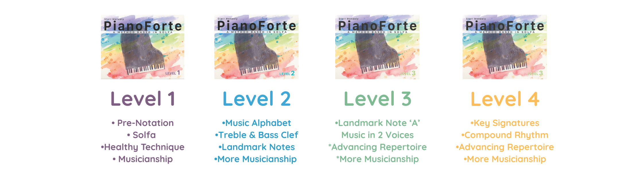 A complete piano studio curriculum — 4 levels, fully sequenced, ready to teach!