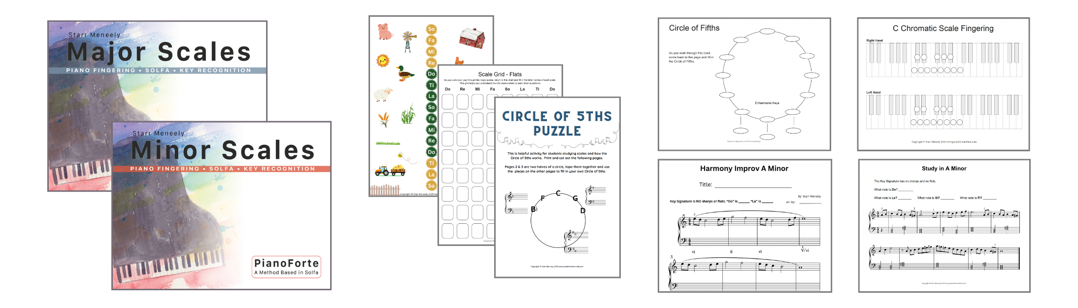 All of the material from both the Major and Minor Scale books. The scale curriculum guides students through all major and minor scales, chords, analysis and improvisation.