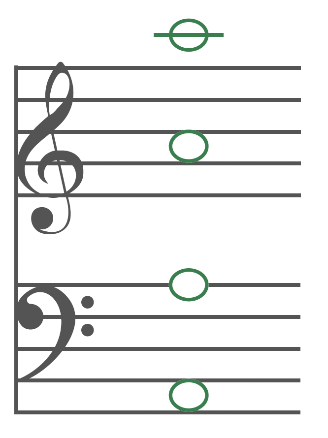 This is a really useful approach to reading because when students can recognise where ‘A’ is, it’s easy for them to find the rest of the notes quickly - simply by using the alphabet. Using ‘A ‘as a landmark is also useful because it encourages students to read the whole range of the grand stave including the first ledger line above the treble clef. (This means that they don’t always need to always use an 8va sign to help them read high notes).